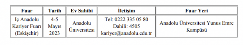 Yaşadığımız deprem felaketi nedeniyle ertelenen İç Anadolu Kariyer Fuarının aşağıda belirtilen tarihte düzenlenmesinin uygun olacağı değerlendirilmiştir.