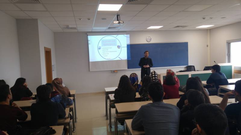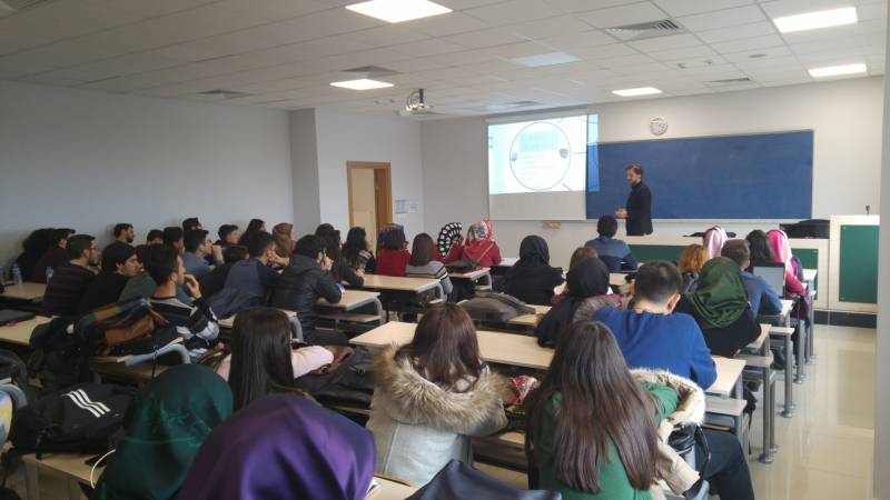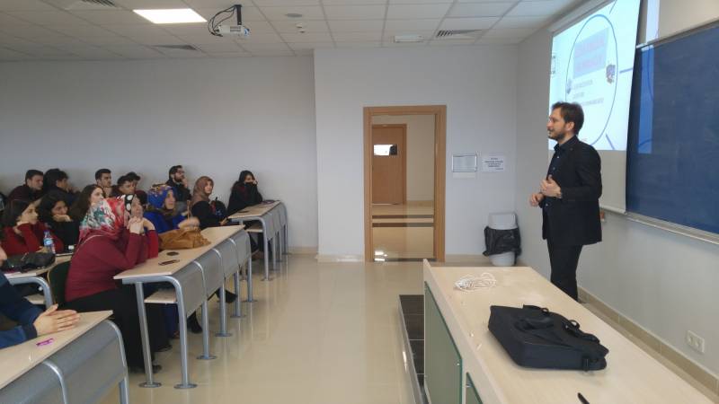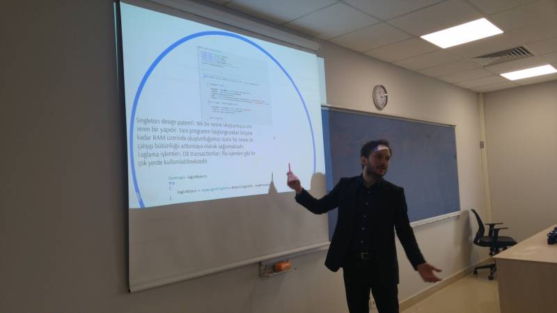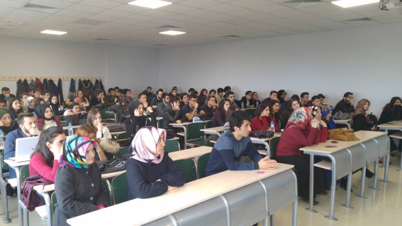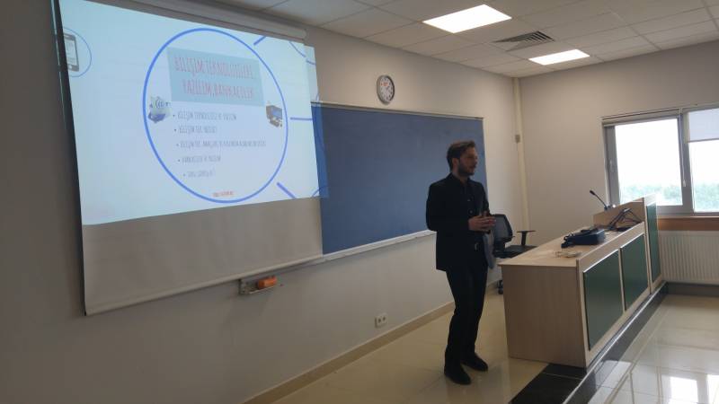 Bölüm mezunlarımız ile öğrencilerimizi buluşturmayı amaçlayan “Sahadakilerimiz Seminerleri” kapsamında 15 Mart 2017 Çarşamba günü bölümümüz mezunu Bilg.Müh. Oğuz ALTUNTAŞ konuk olmuştur. “Yazılımın Banka Sektöründeki Konumu ve Bilişim Teknolojileri” başlığıyla yapmış olduğu söyleşide Oğuz ALTUNTAŞ, bankacılık sektöründen yazılım örnekleri vermiş olup ayrıca Sanal Gerçeklik, Siber Güvenlik ve Mobil Uygulamaların önemine vurgu yapmıştır. Söyleşi esnasında soru cevap kısmıyla da lisans zamanı ve sonrası tecrübelerini öğrencilerimize aktarmıştır.