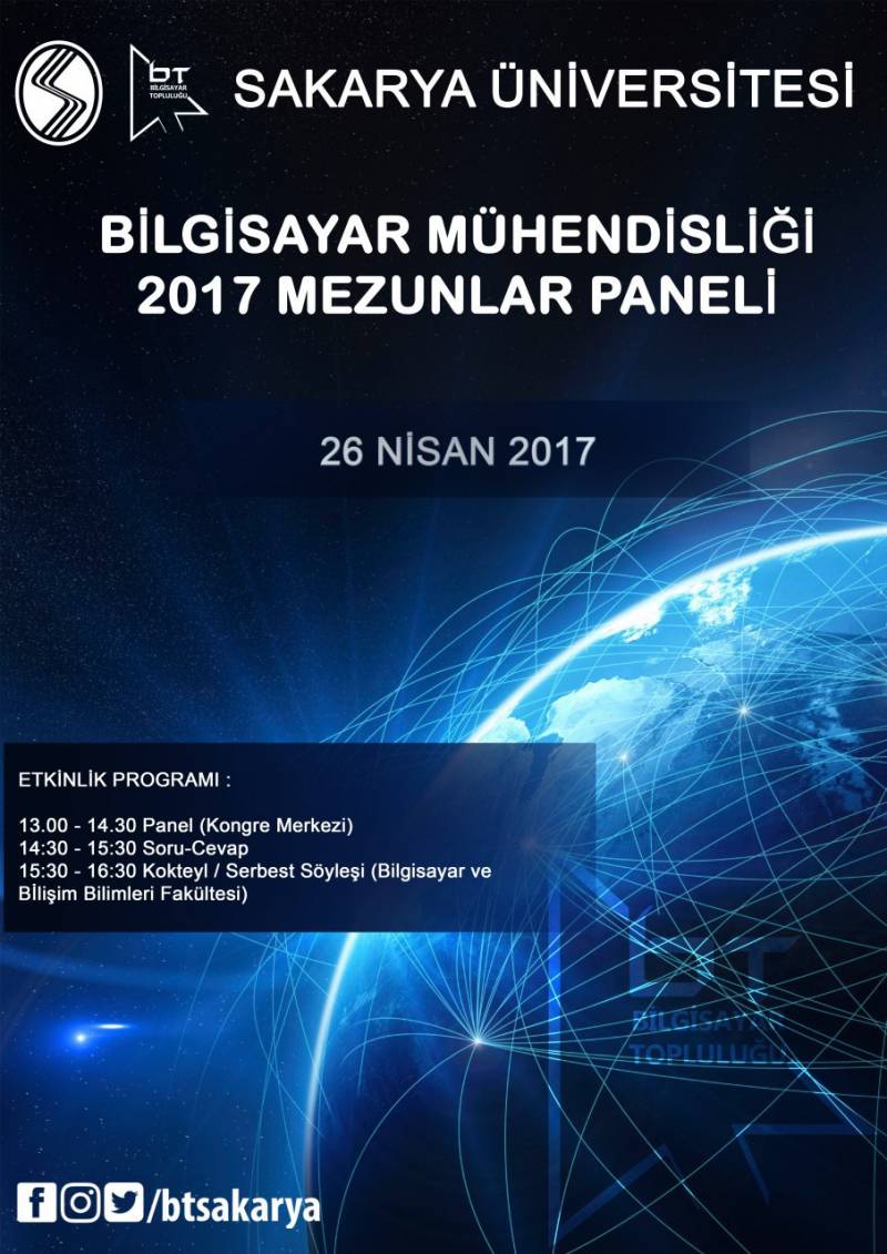 Bölüm mezunlarımız ile öğrencilerimizi buluşturmayı amaçlayan “Mezunlar Paneli”nin dördüncüsü bu hafta düzenlenecektir. 26 Nisan Çarşamba saat 13.00’da Kongre Merkezi 4 nolu salonda başlayacak olan panelde mezunlarımız öğrencilik ve iş yaşamları hakkında bilgi verecek olup, sonrasında fakülte binamızda gerçekleşecek olan Kokteyl kısmında da mezunlarımız tecrübelerini öğrencilerimize aktarmaya devam edeceklerdir.