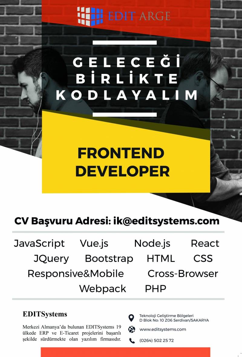 CV başvuru için: ik@editsystems.com